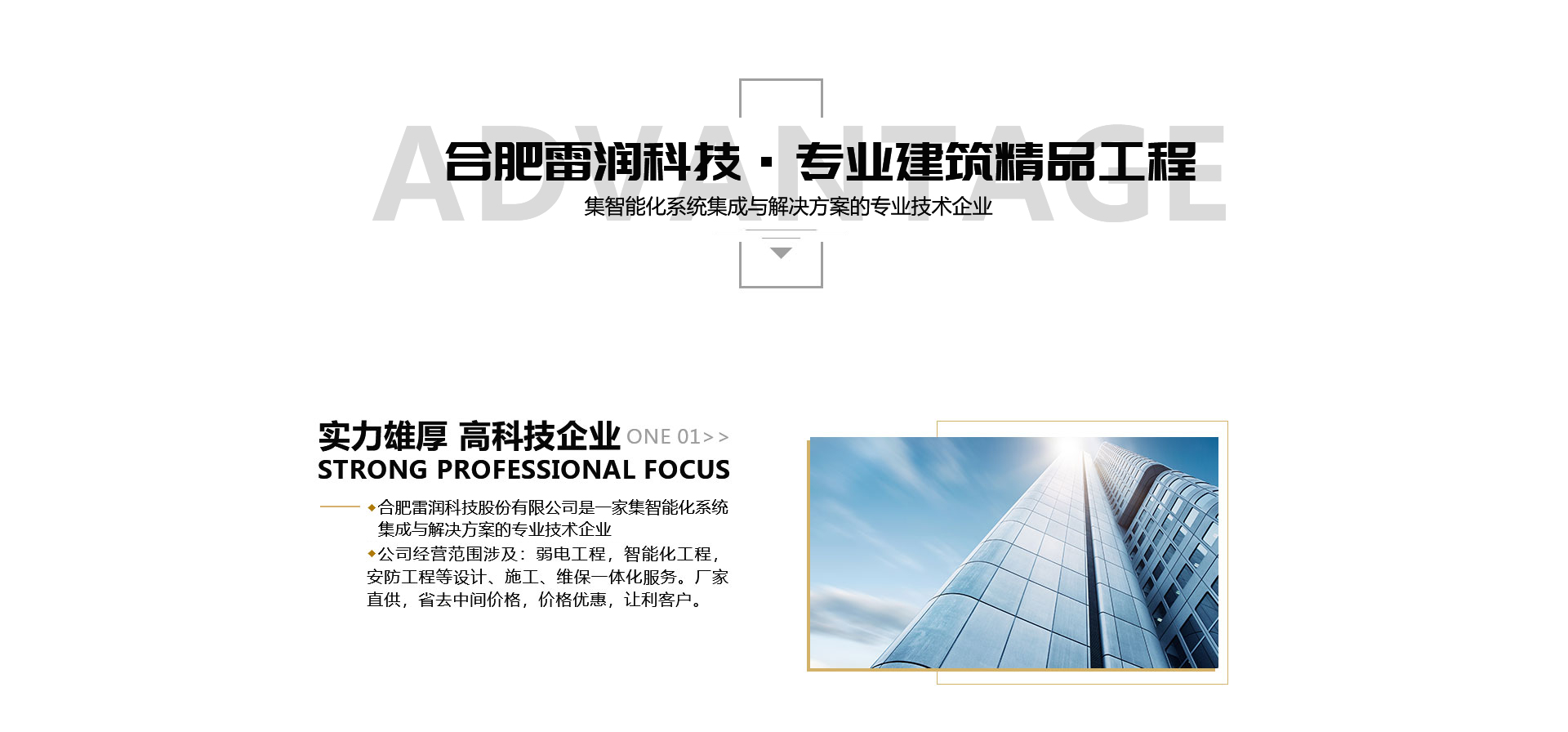 合肥雷潤科技股份有限公司成立于2014年,經過多年的蓄勢發展,已成為行業內頗具影響力的智能化系統集成與解決方案的技術企業。公司經營范圍涉及:建筑智能化系統、綜合布線、安全技術防范系統、車牌識別系統、門禁控制系統、廣播會議多媒體、計算機網絡、應用軟件定制開發、機房工程、多媒體展廳、LED屏信息發布系統等的設計、施工、維保一體化服務。同時代理經銷各類電子電氣產品。我們與國內外眾多品牌供應商建立了良好、穩固的合作伙伴關系(如:??低?、天地偉業、IBM、華為、H3C、銳捷、APC、康普、Honeywell、R&M、BOSCH、捷順、HID、TOA、迪士普、SAMSUNG等)。為單位、醫院、學校、國企、外企、房產物業等客戶提供的系統集成和產品技術服務,并獲得用戶好評。 我們擁有一支朝氣蓬勃技術的團隊,現有本科學歷以上員工占總人數的80%,并且擁有12名中工程師、7名注冊建造師、各類技術資質工程師15名。具備的技術力量和的實施團隊。我們始終秉承I...